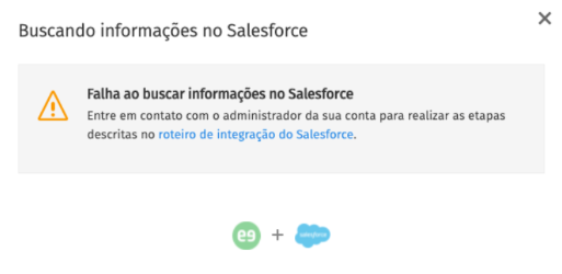 📌 Observação: Caso algum desses campos não esteja habilitado na sua conta do Salesforce, o recurso de click-to-call da Meetime não funcionará corretamente e será exibida a seguinte mensagem na plataforma:
